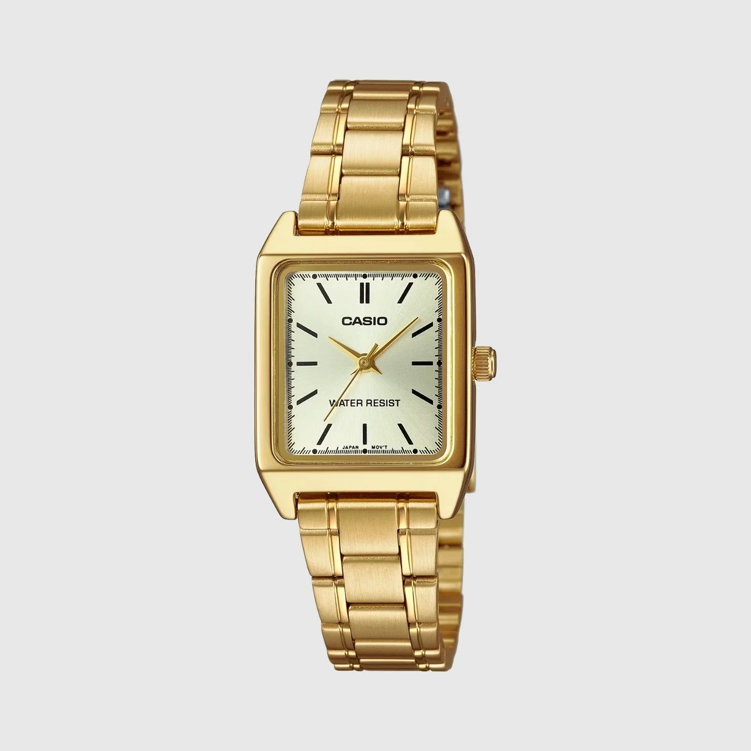 The Casio Standard LTP-V007G-9EUDF Watch is a timeless women’s timepiece featuring a classic square dial, elegant gold stainless-steel bracelet, and precise quartz movement for reliable daily use. Its champagne-gold face, scratch-resistant mineral glass, and lightweight design make it perfect for office wear, casual outings, and everyday elegance. With its vintage-inspired look and trusted Casio durability, this model is ideal for women seeking a stylish, long-lasting, and budget-friendly gold watch.